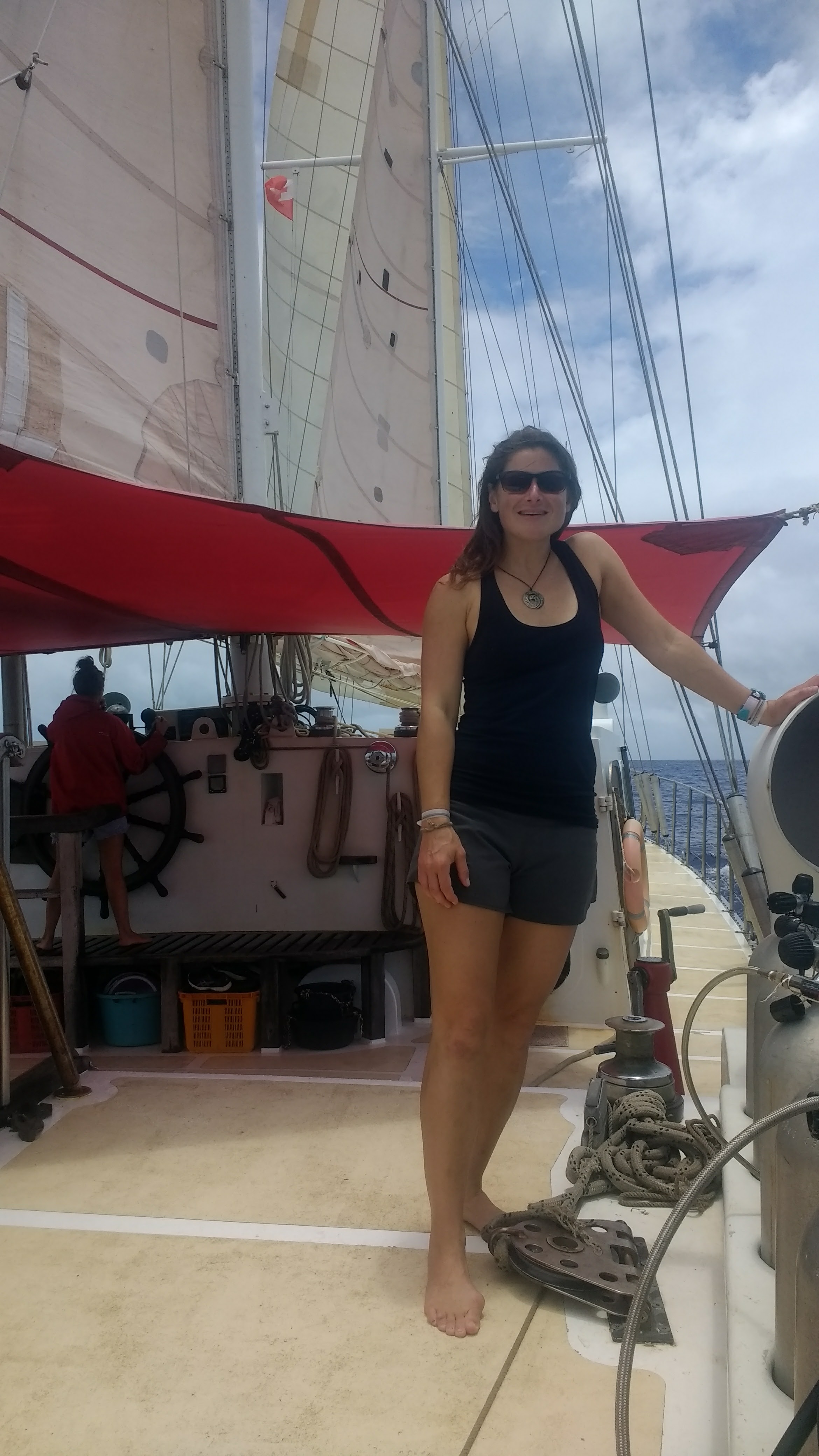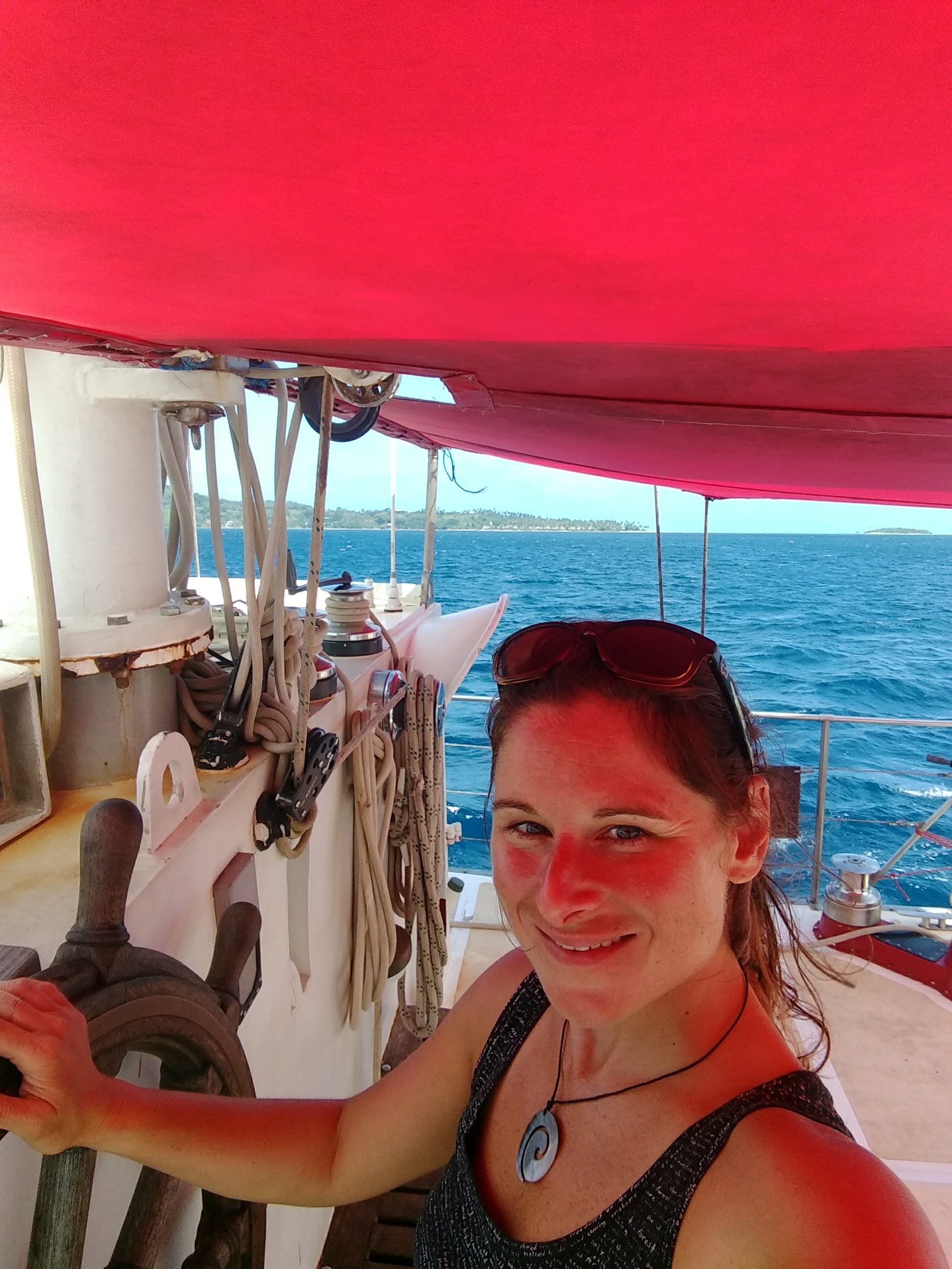 Wow… What a week. 6 days ago we raised the sails and set off for Fiji from Tonga, a 4 day trip across the open ocean if all went smoothly. For 3 of those 4 days there was not a speck of land in sight. The ocean crossing stirred all the emotions. It was daunting, exhilarating, exhausting and stunning. I was surprised how quickly the continuous 10 foot swells became (almost) comfortable. We took shifts at the helm, through both the rare moments where staying on course was a breeze to the storms we encountered where mother nature threw all her elements at us in an attempt to send us any direction but straight forward. I came to understand the bumping and clanging noises that at first kept me up at night envisioning the ship falling apart beneath me. I also now appreciate the ability to prepare dinner or play settlers of Catan without the world around you changing orientation by a solid 90 degrees every second. But you manage. I know now it’s totally possible to hold a plank or jump rope on unstable ground (thanks Matt Johnson), and it’s probably even better training for ski season 🙂 There’s also no better feeling than seeing land again for the first time in days, especially when that land is the most idyllic spit of sand with two perfect coconut trees peeking out of the turquoise water under a sunny sky. We reached Savusavu Fiji the next day, cleared customs, had a killer local dinner in town and celebrated with an impromptu dance party on board the boat that night. This island is lush and rugged, and is far less developed than the main island to the south where we’ll be in a few days to do the bulk of our provisioning for the next month. We’ve already swam in a waterfall, hiked through the rainforest and snorkeled with sharks in just a couple days. I couldn’t ask for a better crew to work and play together with… We’ve got so many more adventures ahead! Still pinching myself daily in awe of this life I’ve found myself in!