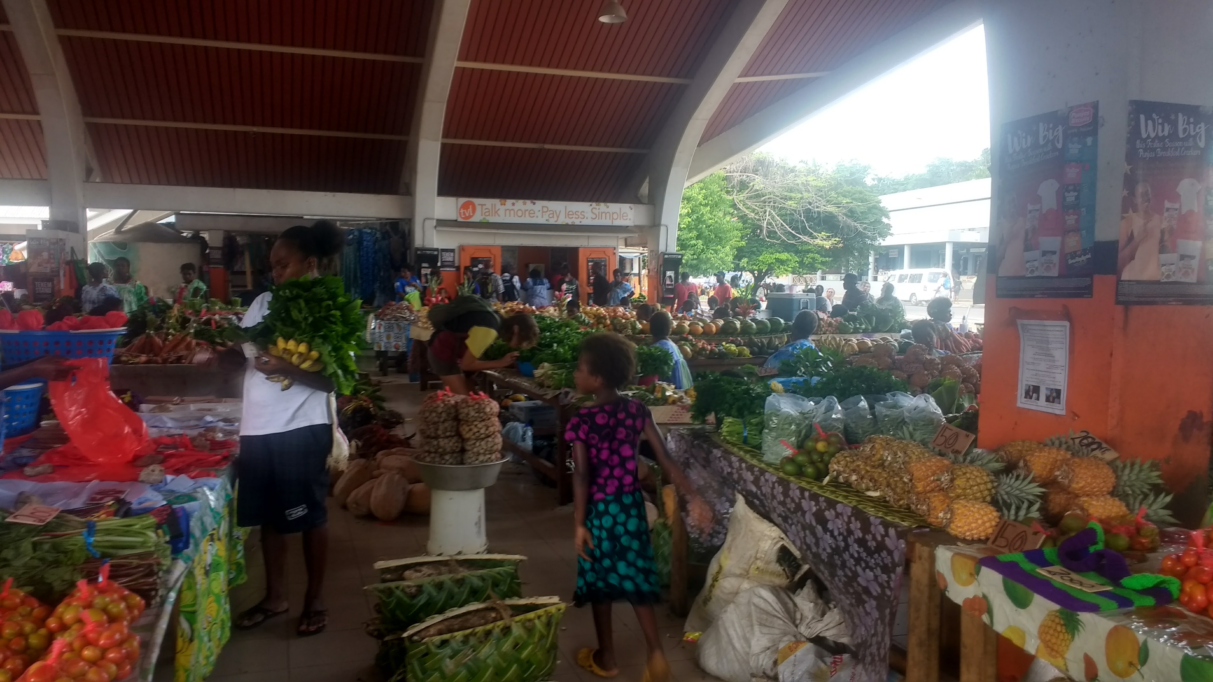 Above: “Excuse me Miss, are these crabs fresh?” – At the Port Vila Farmers Market