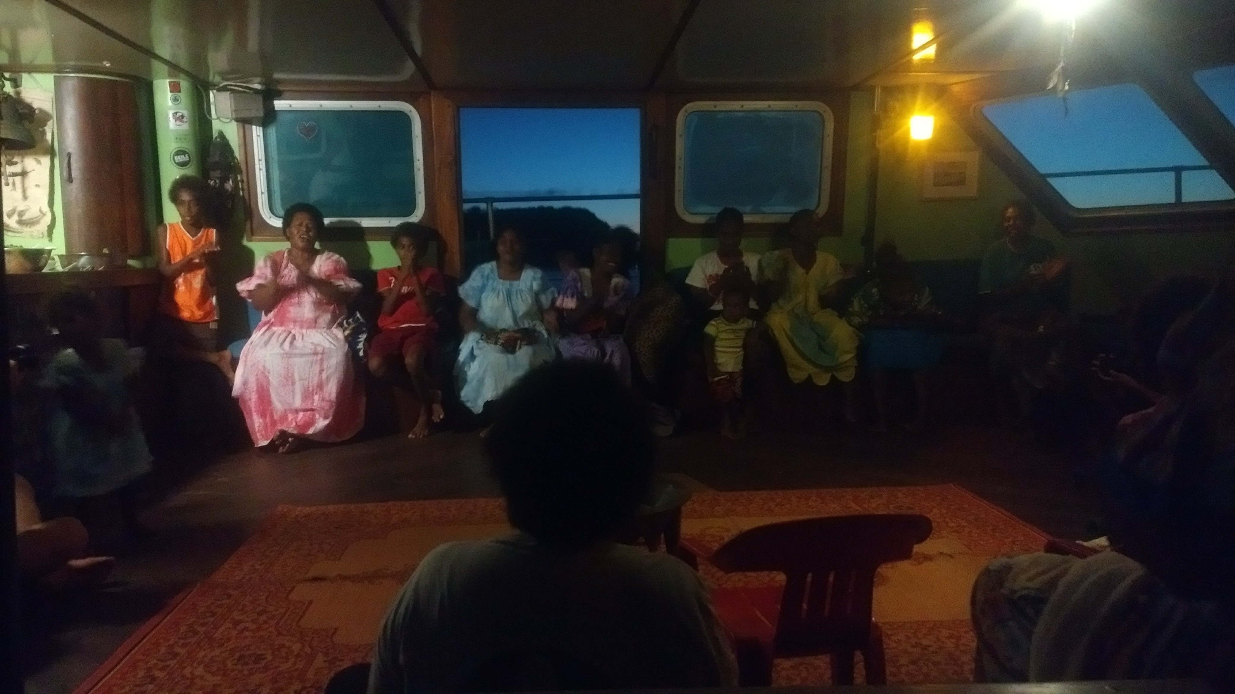 Below: Locals sharing their songs (and their Kava) with us on the boat