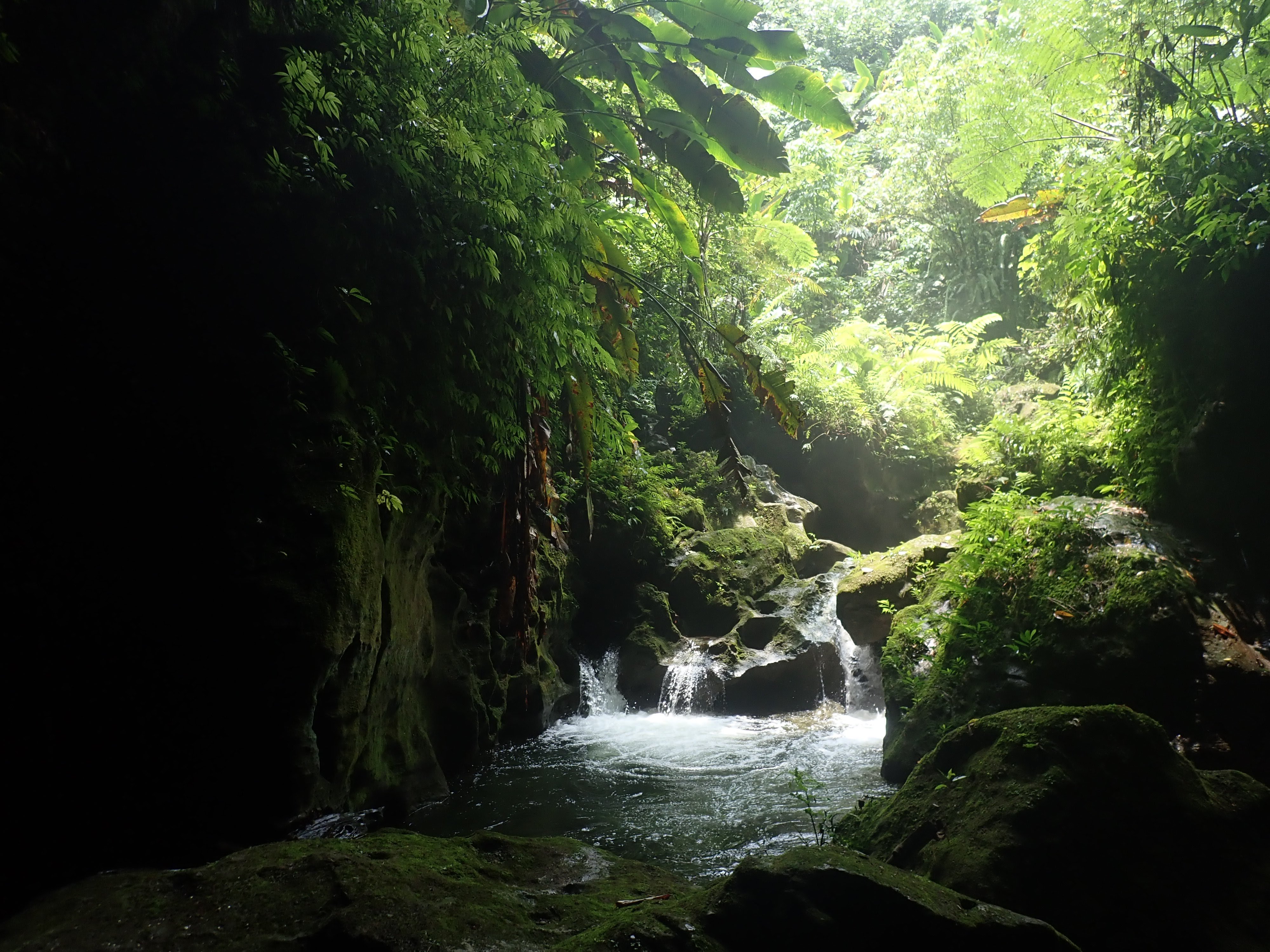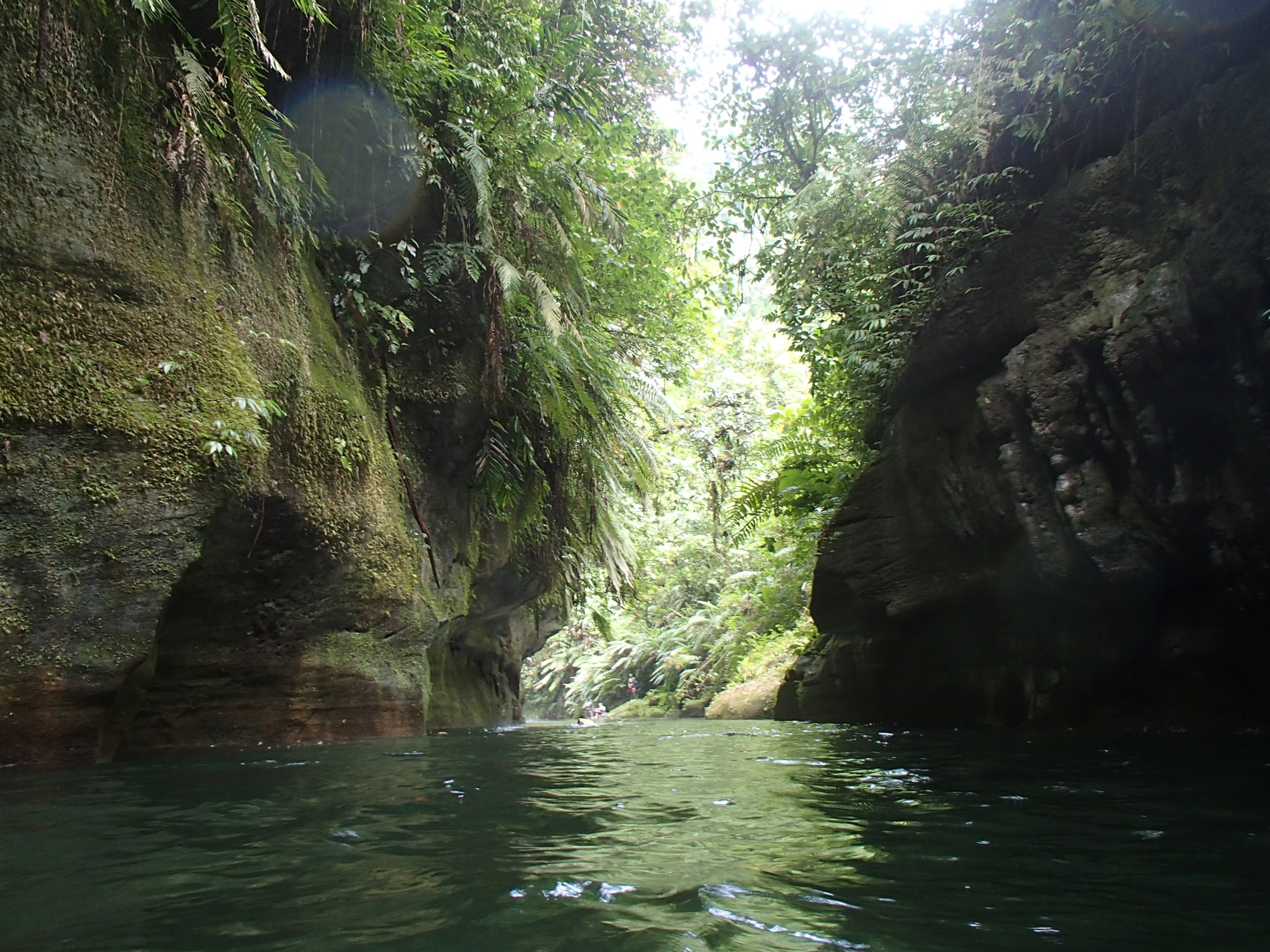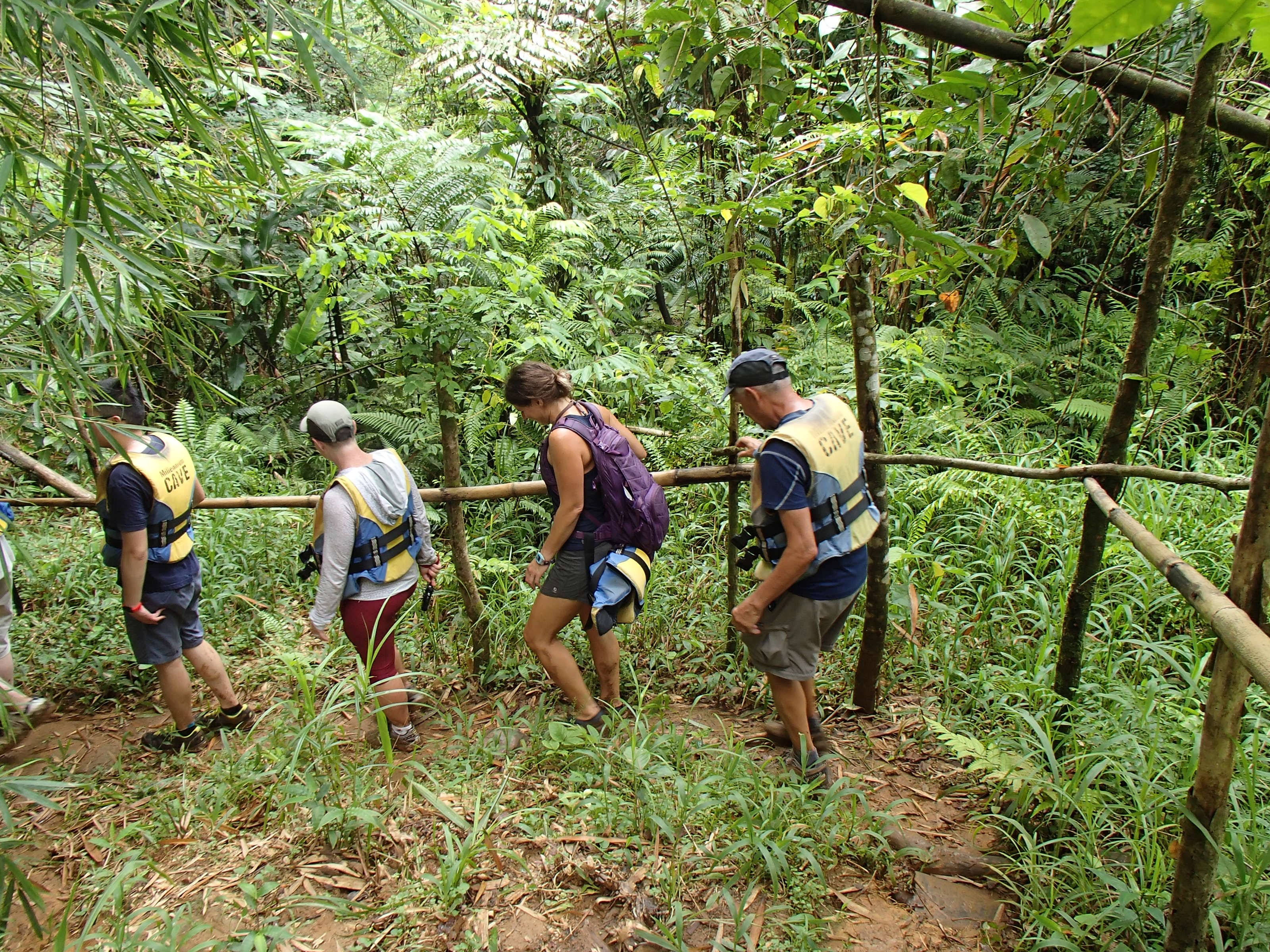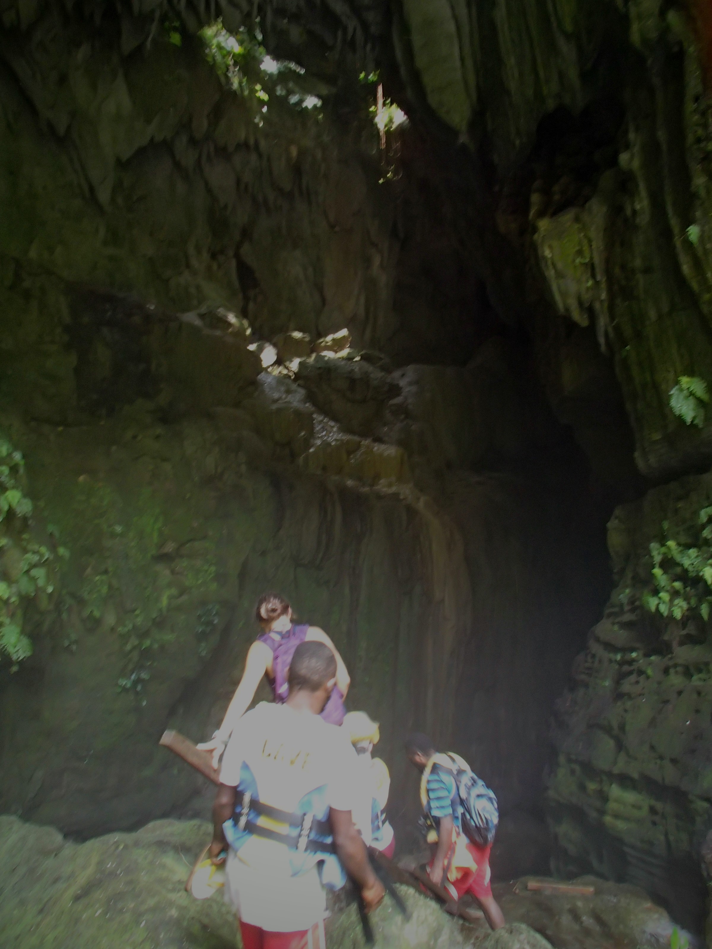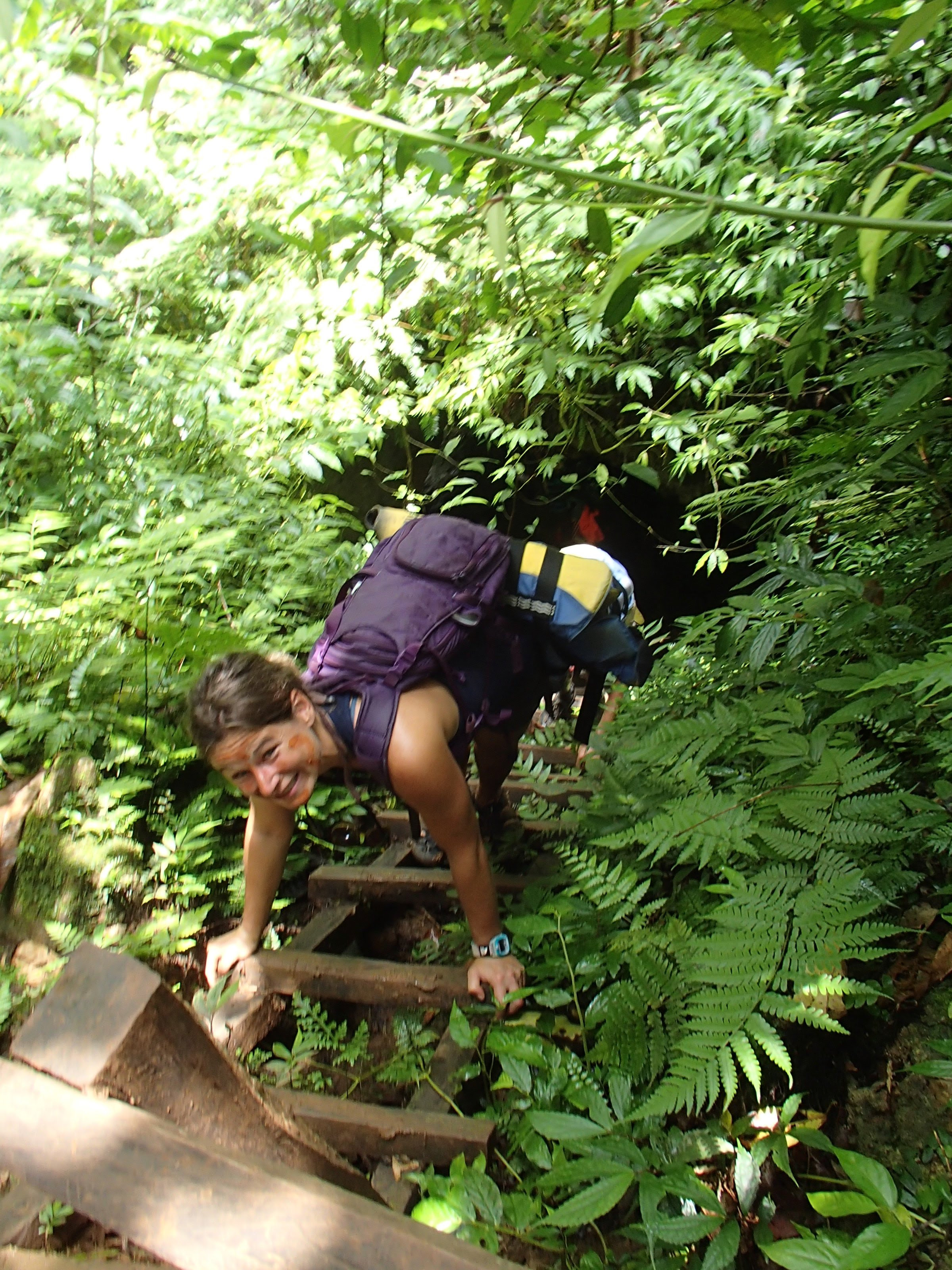 Here’s what I knew about the millennium cave: the awesome couple in a 20-ft sailboat who’d swung by to visit a couple times said it was absolutely amazing and that I HAD to do it. Alright. I knew it was an all day hike, but that only encouraged my interest. The tour company picked me up and gave a brief overview of the day ahead: drive to a village, hike to another village, start hiking through the rainforest, enter the cave, come out of the cave 500m later, have lunch by the river, float/swim down the river, hike back though the jungle to the village for snacks and the car. Sounds cool, but the somewhat touristy feel to it and the fact that there was a whopping 6 of us and 4 guides on the tour had me a little skeptical. Oh, and all the other guests had come straight off a cruise ship. So we started the hike, both of the villages were great but I’d had my immersion experiences in local villages already so not much to report there. I did VERY much appreciate that the tour was managed by these villages and all proceeds went back to their schools, hospitals and infrastructure. I was trying really hard not to get impatient with the two guys who were already struggling on the muddy jungle trail. We tramp through the jungle, up and down ladders, over expensive views of lush rainforest, resting a couple times along the way, and stopping for customary face painting as a tribute to the gods (or something).