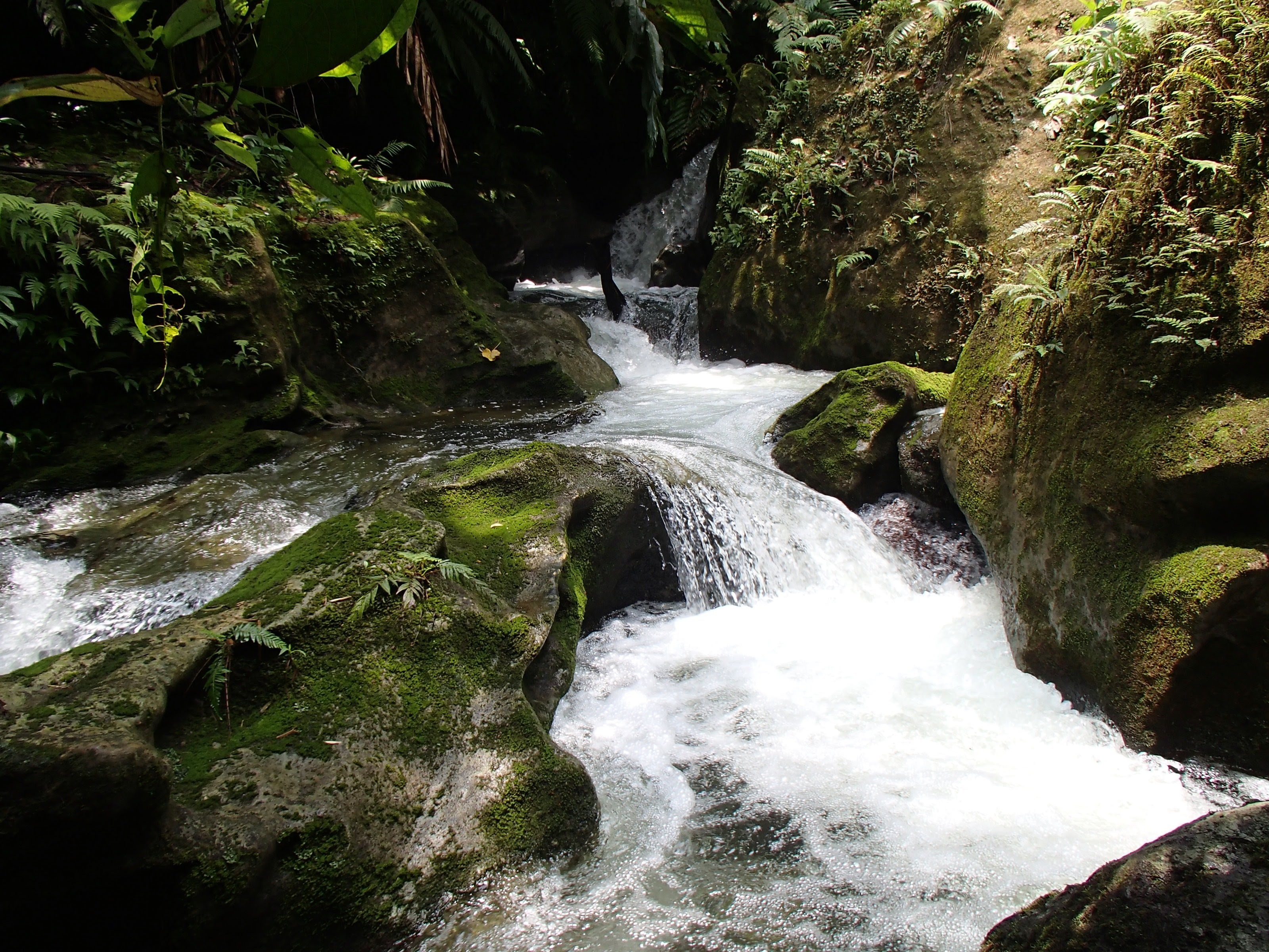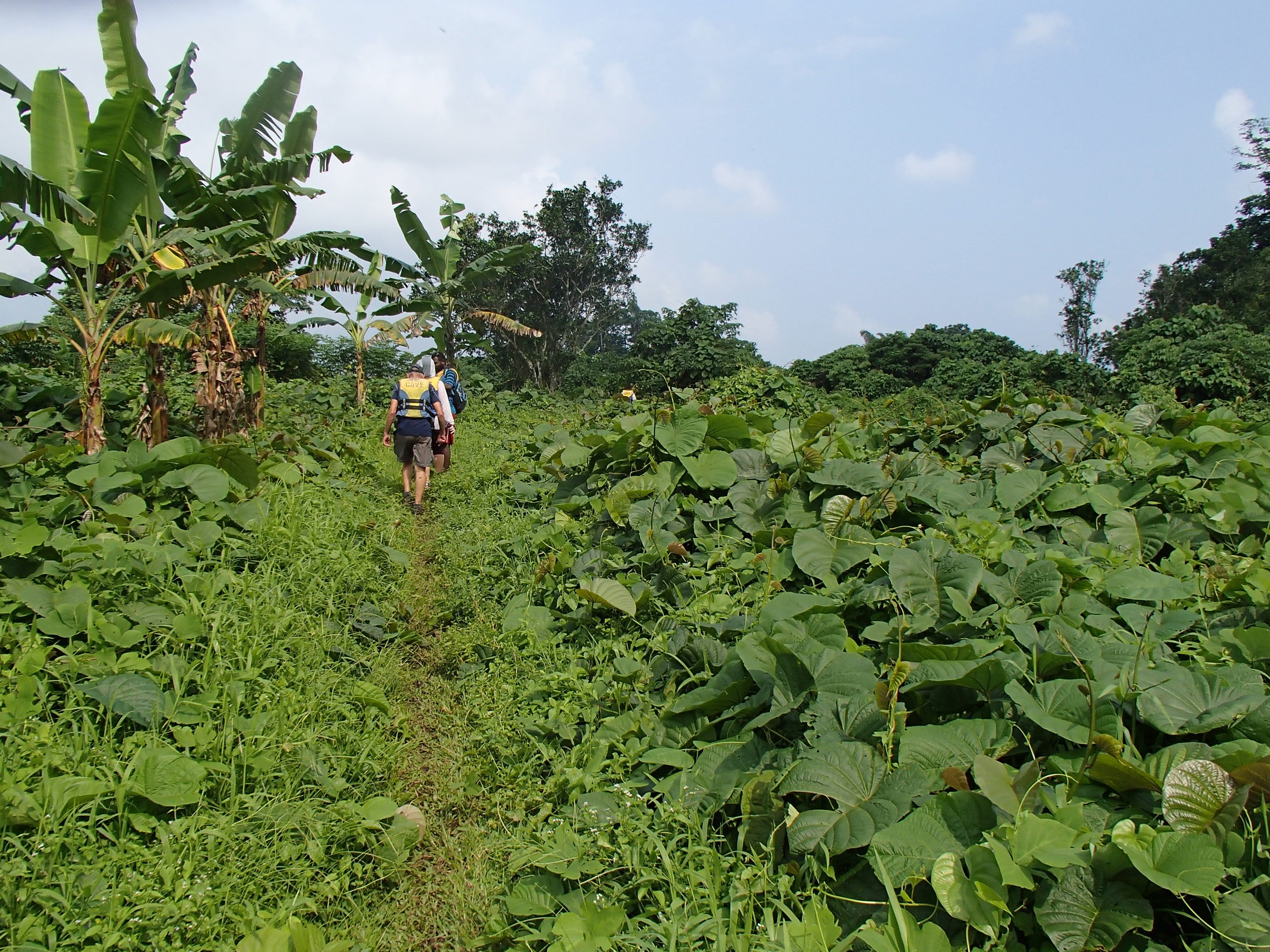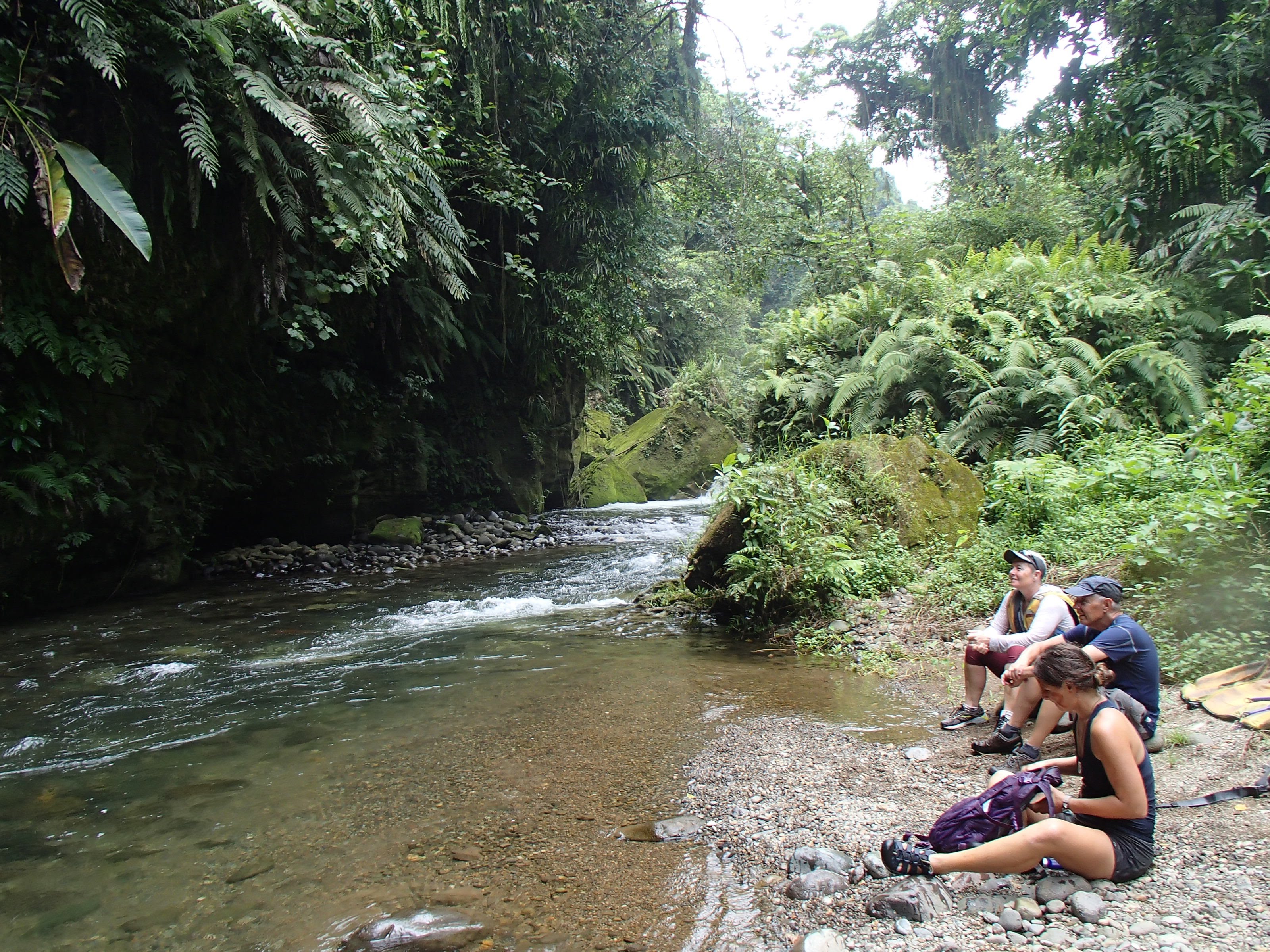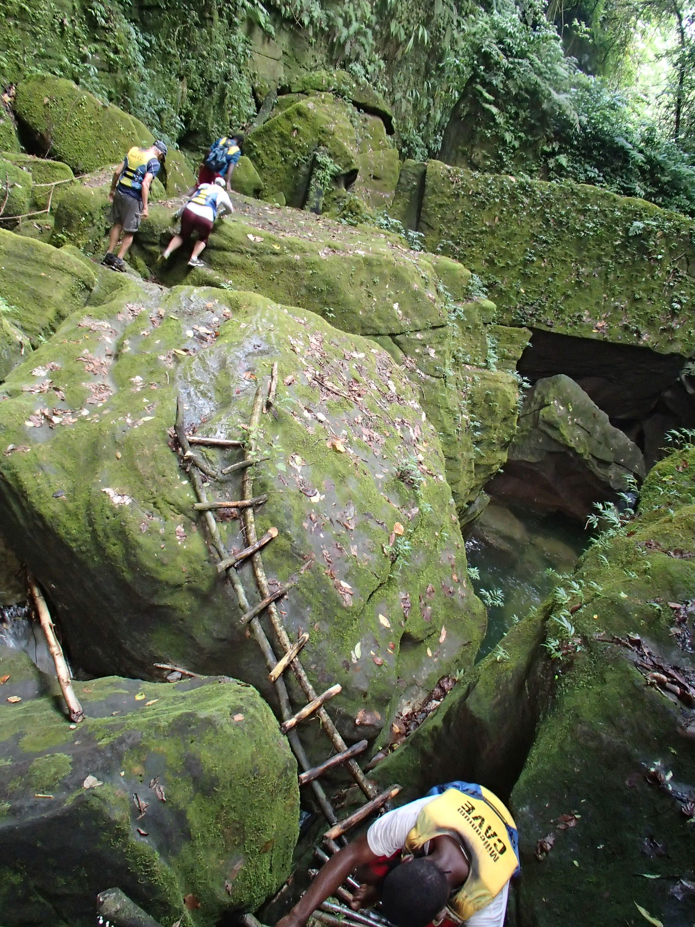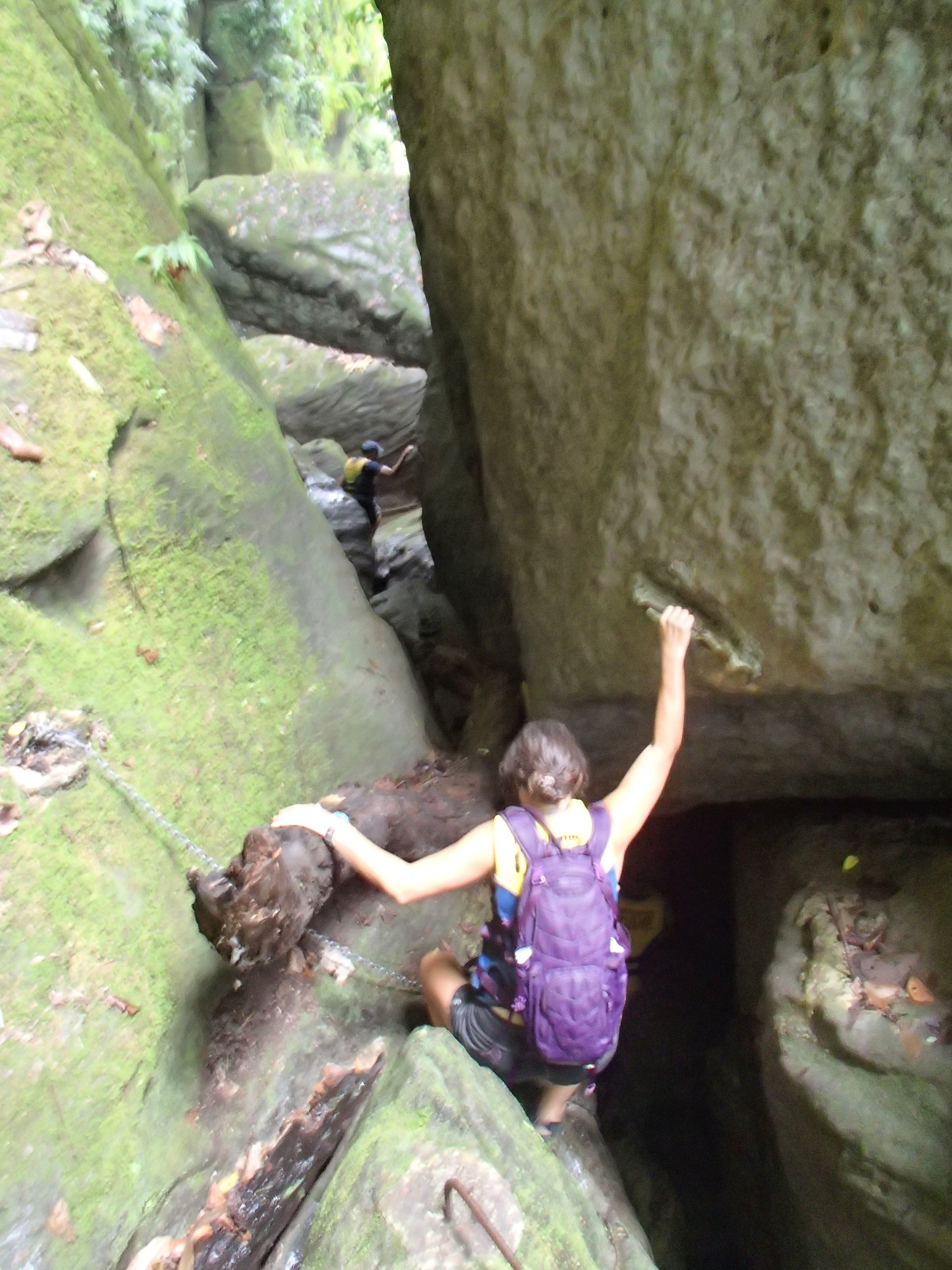 Here’s what I knew about the millennium cave: the awesome couple in a 20-ft sailboat who’d swung by to visit a couple times said it was absolutely amazing and that I HAD to do it. Alright. I knew it was an all day hike, but that only encouraged my interest. The tour company picked me up and gave a brief overview of the day ahead: drive to a village, hike to another village, start hiking through the rainforest, enter the cave, come out of the cave 500m later, have lunch by the river, float/swim down the river, hike back though the jungle to the village for snacks and the car. Sounds cool, but the somewhat touristy feel to it and the fact that there was a whopping 6 of us and 4 guides on the tour had me a little skeptical. Oh, and all the other guests had come straight off a cruise ship. So we started the hike, both of the villages were great but I’d had my immersion experiences in local villages already so not much to report there. I did VERY much appreciate that the tour was managed by these villages and all proceeds went back to their schools, hospitals and infrastructure. I was trying really hard not to get impatient with the two guys who were already struggling on the muddy jungle trail. We tramp through the jungle, up and down ladders, over expensive views of lush rainforest, resting a couple times along the way, and stopping for customary face painting as a tribute to the gods (or something).