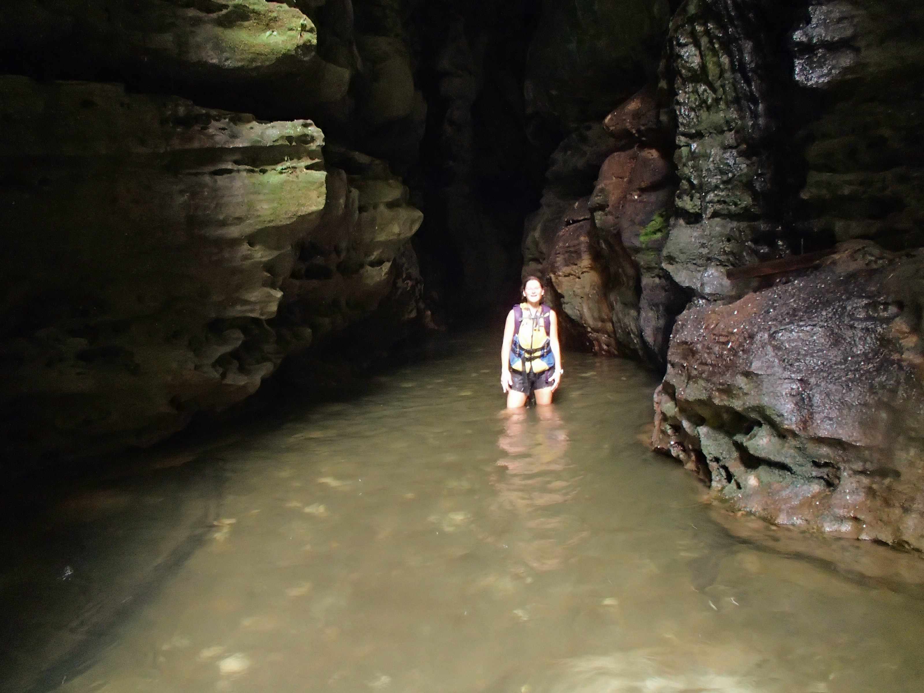 Then we see this HUUUGE cave emerge before us, and we rappel down slick rocks into a river and find ourselves in a stunning cavern. I honestly was prepared for that to be the extent of millennium cave, which would have been impressive enough. But then we clamor forward through the river into the cave, and the guides do a quick check that the life jackets we had in tow were secure on our backs. We proceed to canyoneer through this cave, often reaching HUNDREDS of feet above us, teeming with birds and bats, all the while attempting not to lose footing on the invisible rocks beneath the sometimes waist high water, gushing by at rates that my rafting friends would have been proud of. By the light of some sub-par flashlights. Oh, and then there was occasional waterfalls cascading from the cavern walls and ceilings too. This continued for AN HOUR. From what I know about the renound Subway route in Zion national Park, you canyon for most of a day to arrive at a cylindrical tunnel that’s maybe a hundred feet long (you’ll have to fact check me there) and the Subway has been something I’ve wanted to do for a couple years… And yet here I was in this “cave” that would put that to shame, even if the trip ended there. BUT IT DIDN’T!