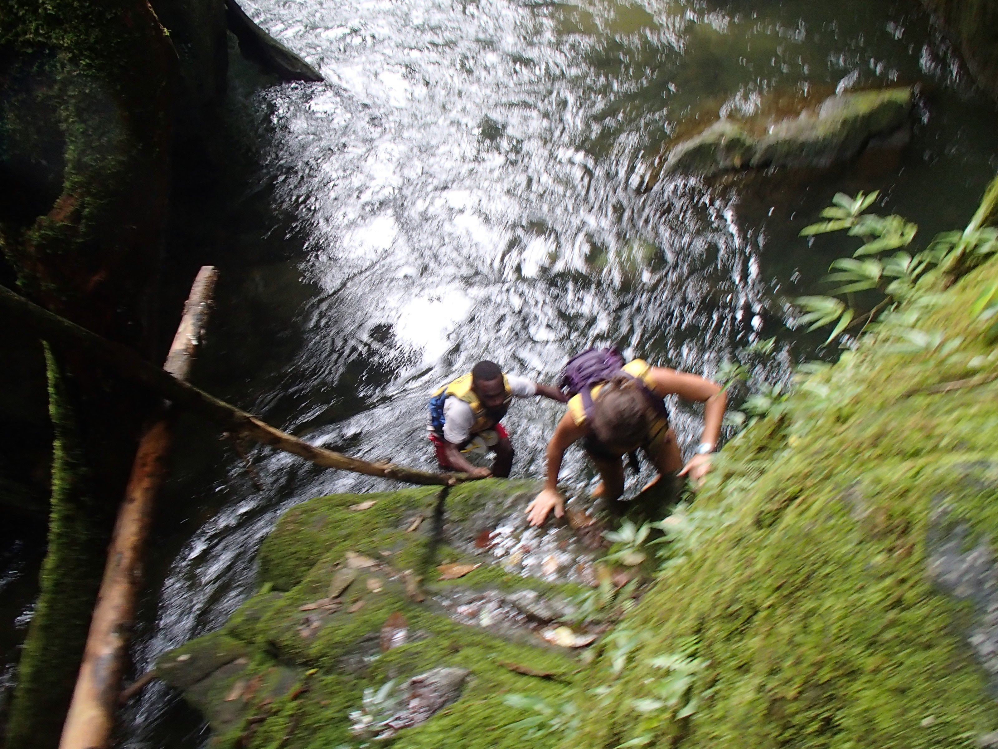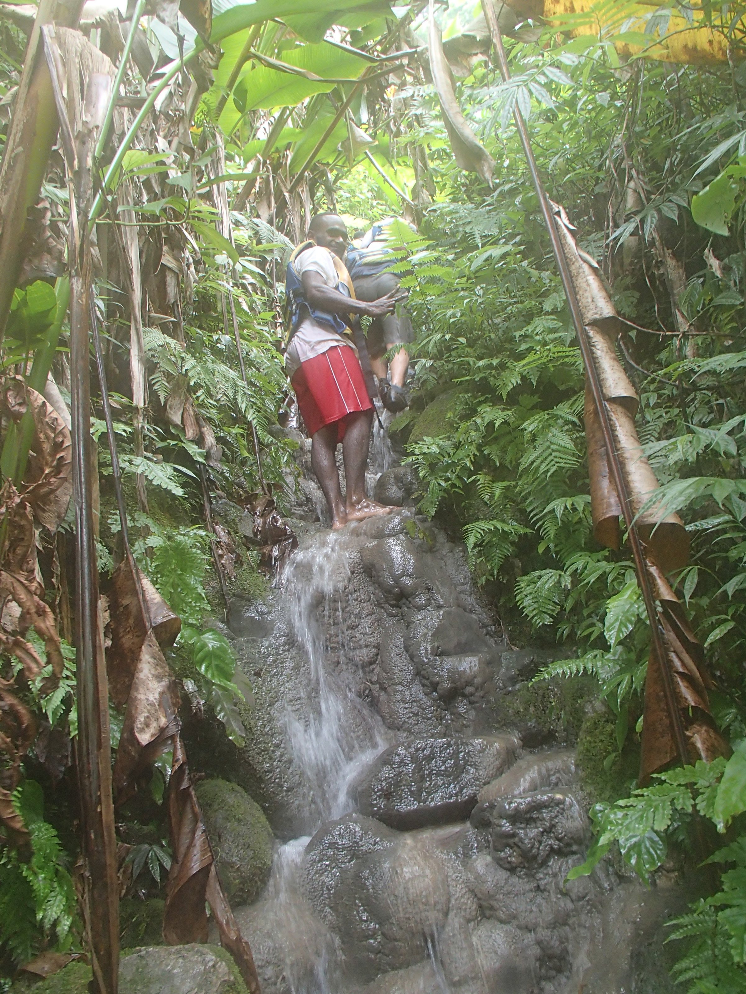 The cave eventually opened up to an adjoining river, which once we all trepidatiously crossed, we collapsed with a common look of “Where the hell did that come from?” and shit-eating grins. We had a quick lunch while “digesting’ the trip so far. Then the guides instructed us to put back on the life jackets for who knows what was next. The first guide instructed one of the guests to jump in the river, and when he looked confused just did it himself, floating with the current off to who knows where, Well, we hadn’t been let down yet! So we’re effortlessly floating down the river in this canyon with walls towering above us, topping out in a canopy of jungle. Cue six twenty to sixty year-olds giggling like school kids. The floating was interspersed with sections of bouldering up and over huge rock outcroppings and scaling the canyon walls, all with perfectly placed rappel lines, handholds and steps. Then we were floating down the river again, this time under waterfalls. Of course, waterfalls. That’s what we were missing. This also continued for another hour and a half or so. All the while we kept giving each other looks saying “Is this for real?!?”. Then we reached our exit point, climbed back up out of the canyon, through the forest and back to the village we started from a good eight hours beforehand. We were soaked to the bone, muddy from head to toe, and couldn’t care less. Mind blown. And I don’t have pictures to show for it (yet) because I don’t have a waterproof camera, so you’ll just have to believe that I didn’t instead spend my $7000 Vatu (about $60 USD) on a euphoric psychadelic drug trip. I should also have some photos in a couple weeks when one of the other guys on the tour sends me some, so thats a least a little proof of this “Disney-esque” not-even-a-national-park-yet experience.