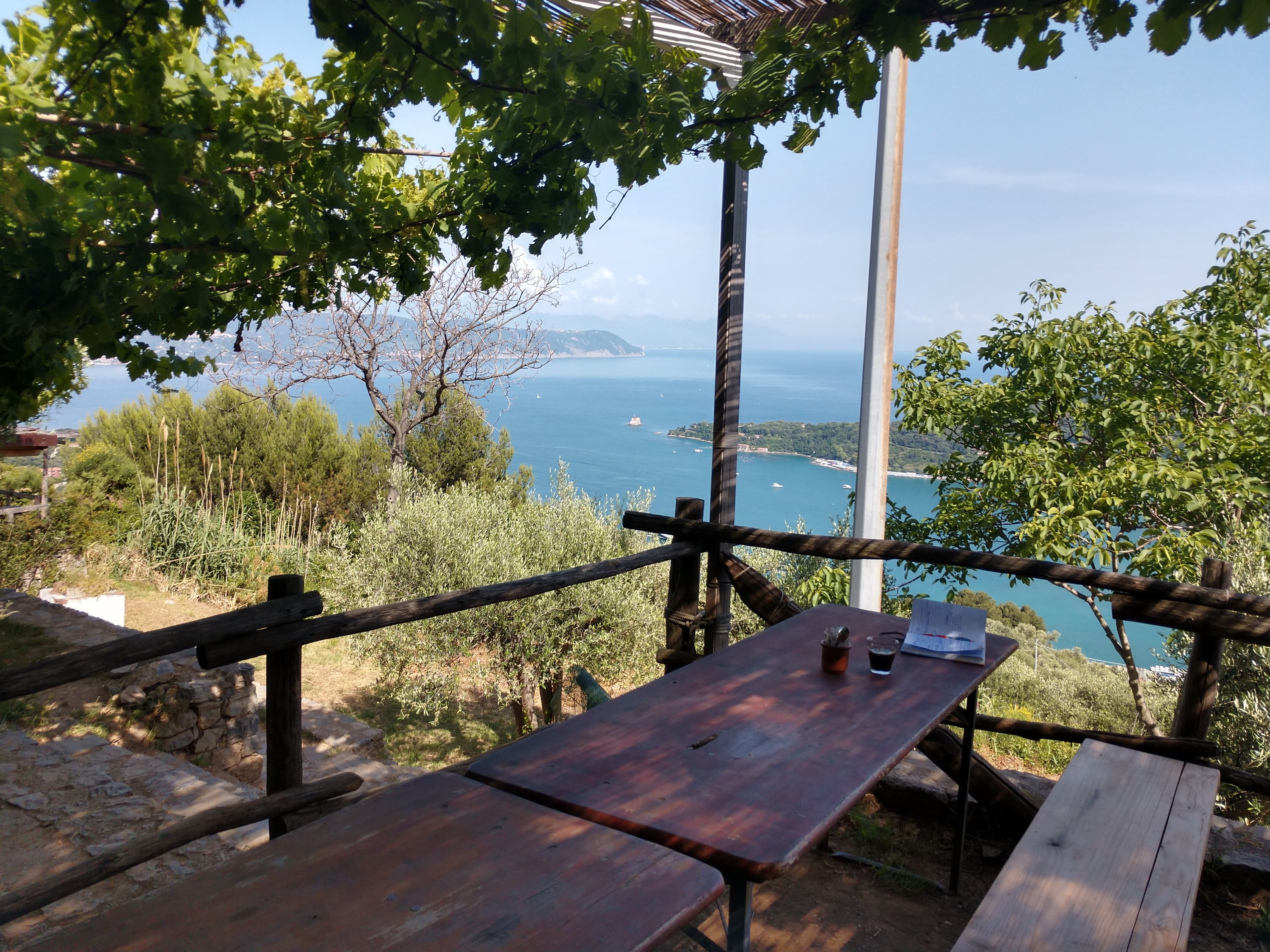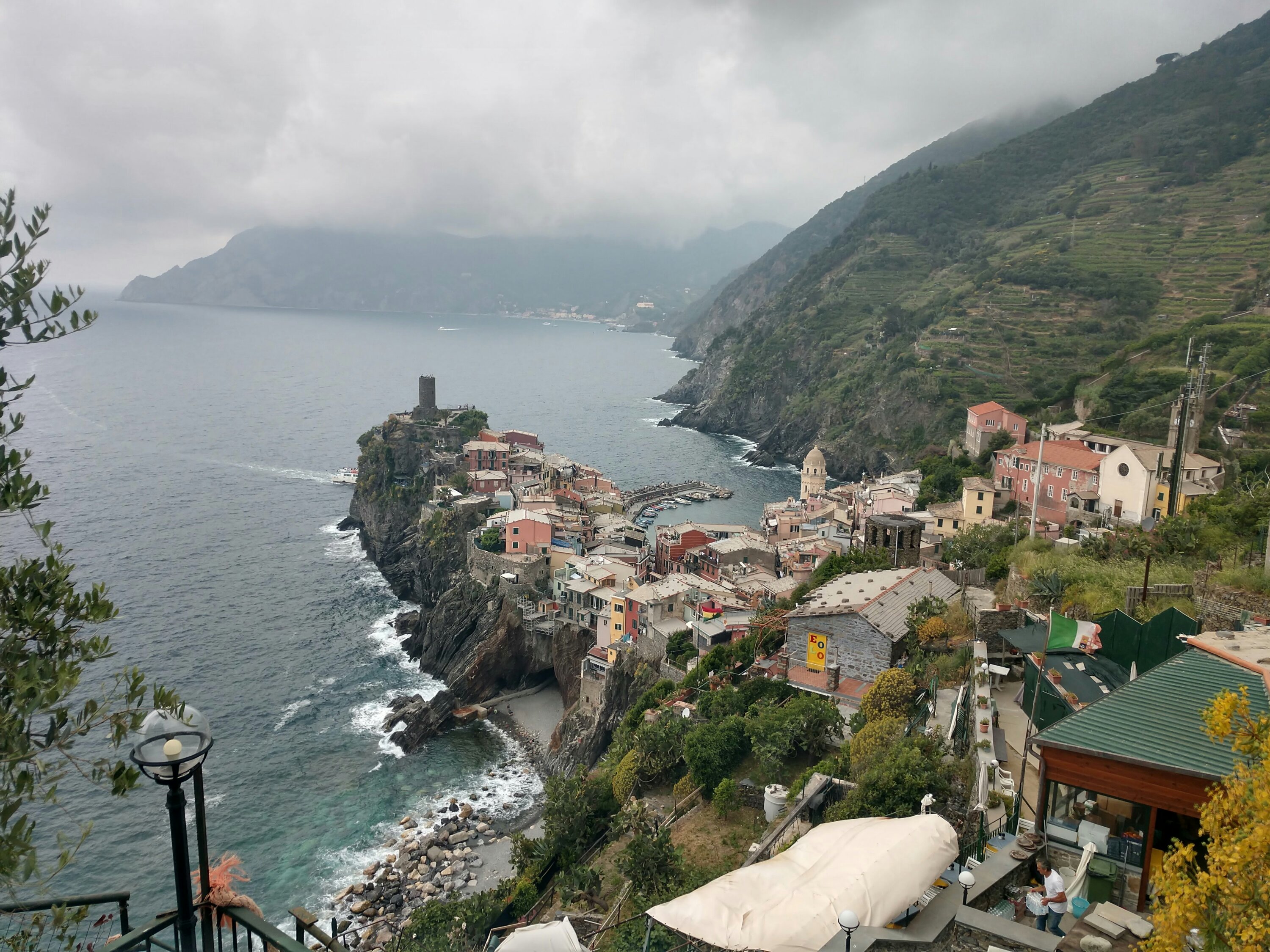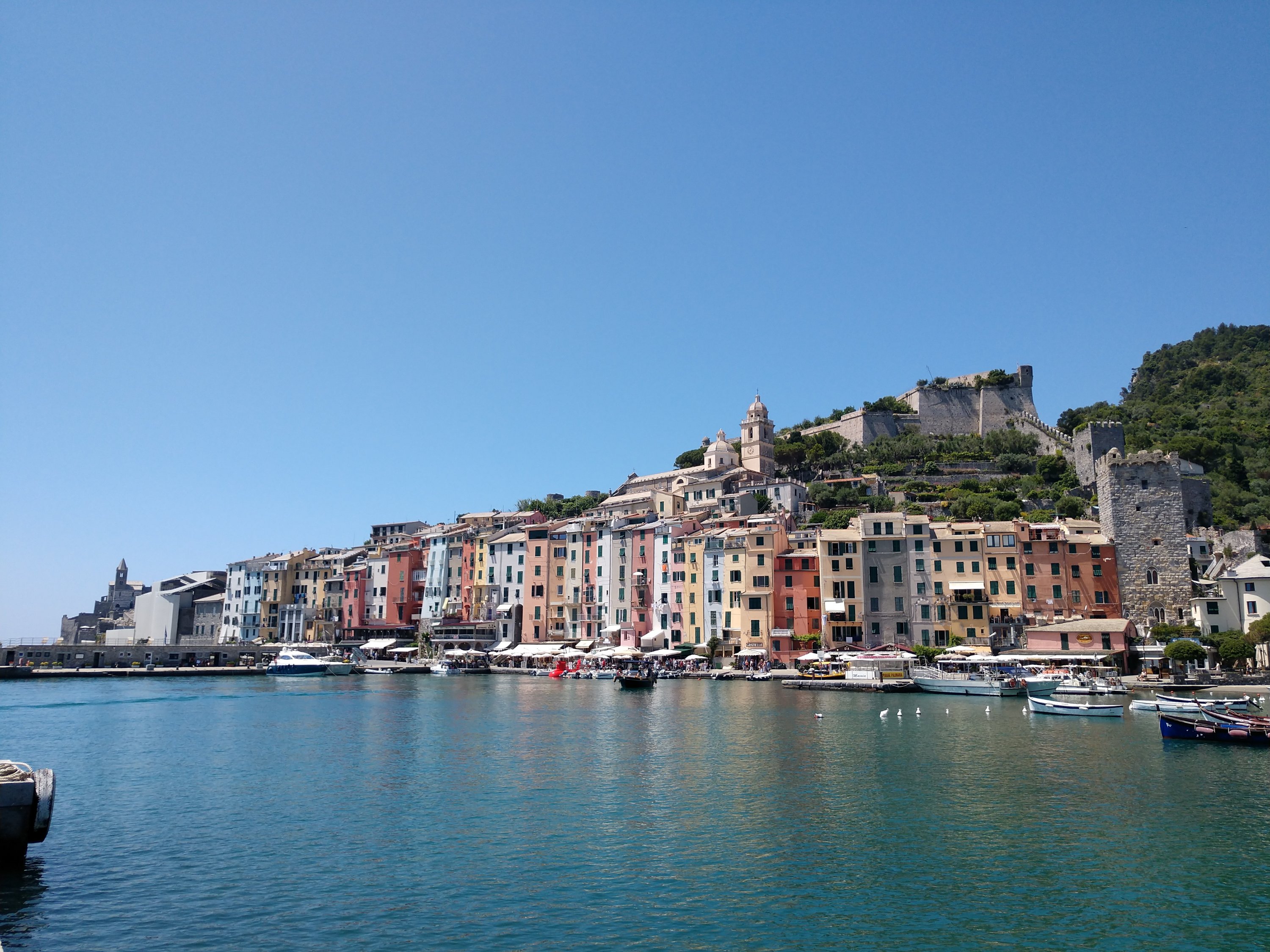 Truth – The sheer amount of breathtaking beauty that I’ve seen throughout the world is almost overwhelming at times. I have moments where I compare the scenery of the cinque terre with that of the Lost Coast of California or with the Kapalii Coast of Hawaii, and I realize how incredibly fortunate I am to have seen such a myraid of remarkable places in my lifetime. My great grandmother and namesake never traveled more than 10 miles from where she was born in her entire life. She never even saw Quebec City, less than 40 miles away. Yet ever since I was a kid my parents would take me hiking in the mountains of Maine or hop on a boat to see the rugged coastlines, and in my own life I made it a priority to travel to and experience natural beauty both close to home and far away. As a result I’ve seen islands, volcanoes, rainforests, mountains, waterfalls, geysers, glaciers, buttes, canyons and a million other landcapes drawn from a pen gone wild. Somehow each scene, regardless of similarities to others I’ve witnessed, exude their own unique personality, which is what I was experiencing overlooking the cliffside pastel communities spanning the Cinque Terre. From the moment the ferry rounded the corner to catch our first glimpse of Porto Venere I knew I was in someplace special. I spent a few hours exploring the picture-perfect town and overlooking castle before ascending up to the pension where I’d be spending the night, and had the panoramic view from the porch picnic table to myself both for an afternoon of writing and then for a 4-course homemade meal made just steps away. There was only three of us staying at the pension that night, two of whom arrived much later and were in an adjacent room, so I had a restful sleep with a window open to the Mediterranean in preparation for two big days of hiking ahead.