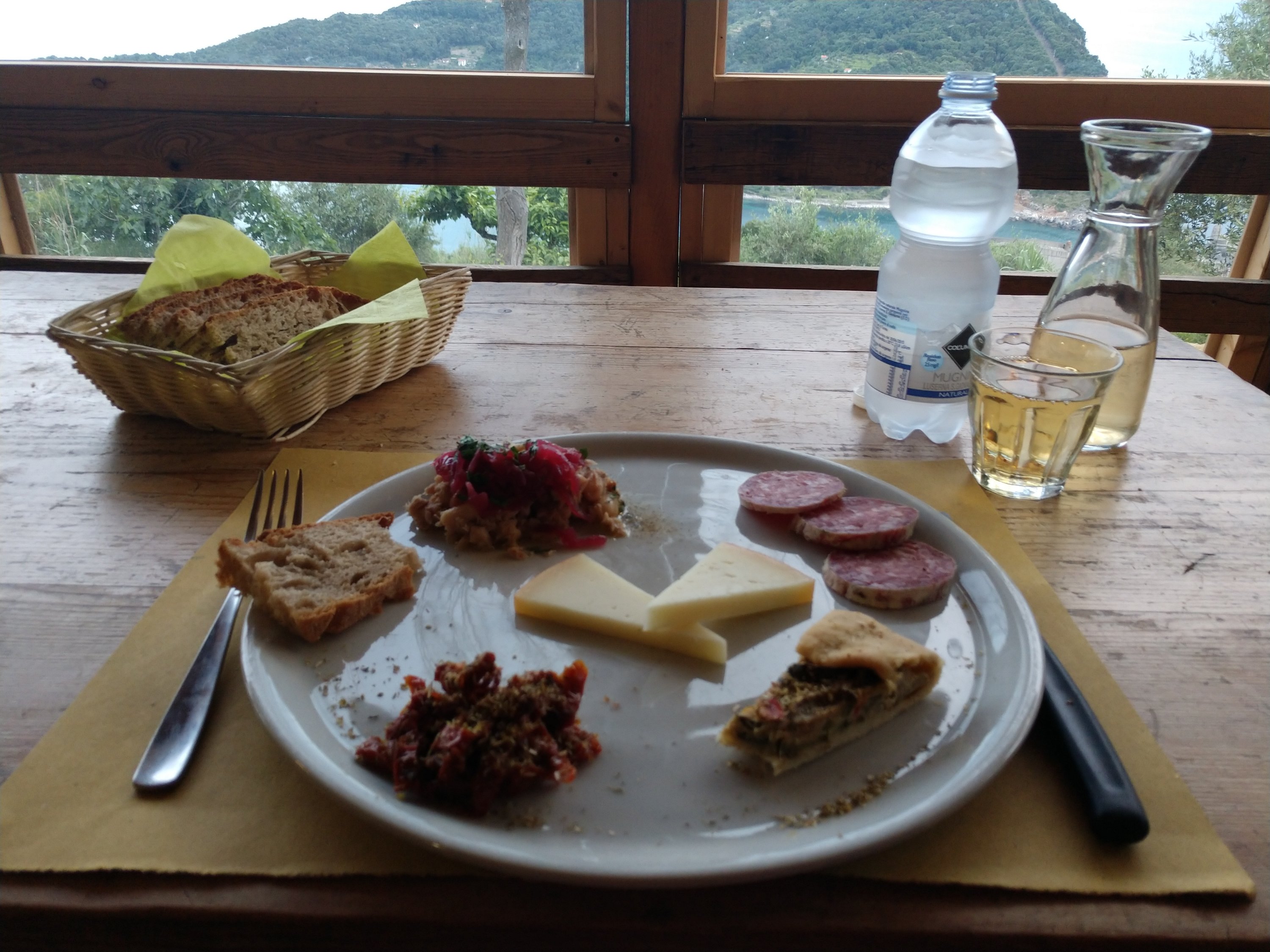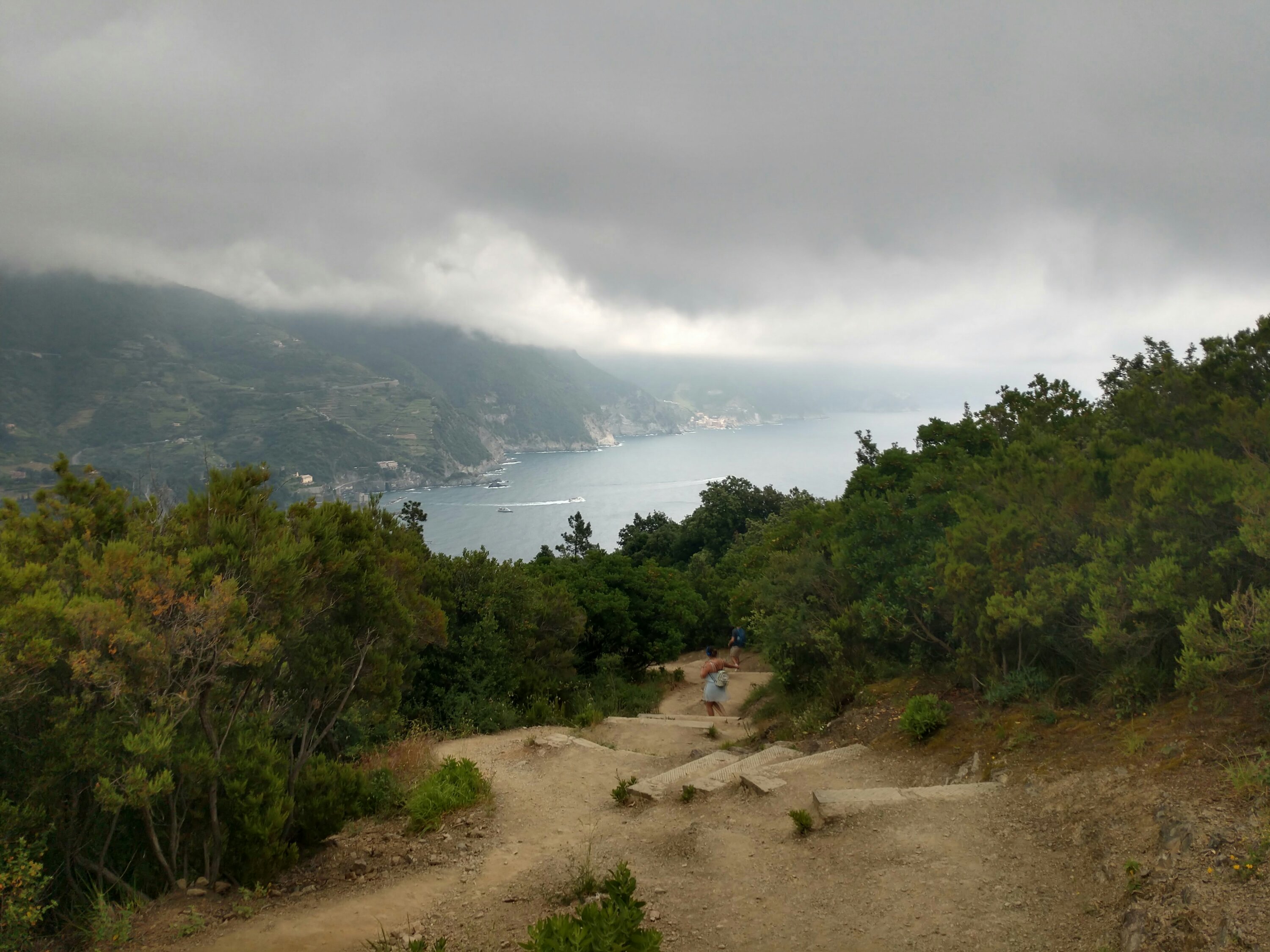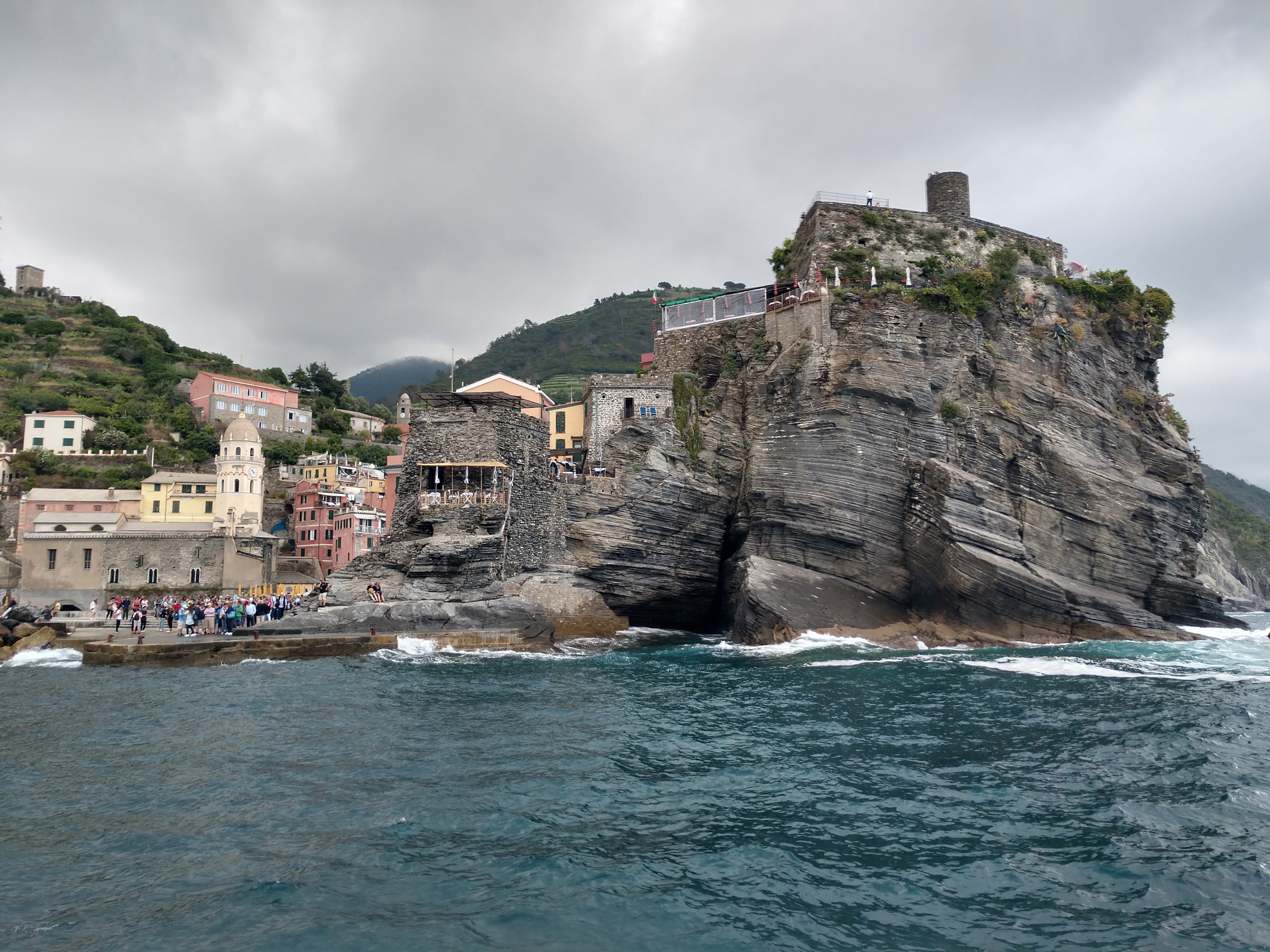 Truth – The sheer amount of breathtaking beauty that I’ve seen throughout the world is almost overwhelming at times. I have moments where I compare the scenery of the cinque terre with that of the Lost Coast of California or with the Kapalii Coast of Hawaii, and I realize how incredibly fortunate I am to have seen such a myraid of remarkable places in my lifetime. My great grandmother and namesake never traveled more than 10 miles from where she was born in her entire life. She never even saw Quebec City, less than 40 miles away. Yet ever since I was a kid my parents would take me hiking in the mountains of Maine or hop on a boat to see the rugged coastlines, and in my own life I made it a priority to travel to and experience natural beauty both close to home and far away. As a result I’ve seen islands, volcanoes, rainforests, mountains, waterfalls, geysers, glaciers, buttes, canyons and a million other landcapes drawn from a pen gone wild. Somehow each scene, regardless of similarities to others I’ve witnessed, exude their own unique personality, which is what I was experiencing overlooking the cliffside pastel communities spanning the Cinque Terre. From the moment the ferry rounded the corner to catch our first glimpse of Porto Venere I knew I was in someplace special. I spent a few hours exploring the picture-perfect town and overlooking castle before ascending up to the pension where I’d be spending the night, and had the panoramic view from the porch picnic table to myself both for an afternoon of writing and then for a 4-course homemade meal made just steps away. There was only three of us staying at the pension that night, two of whom arrived much later and were in an adjacent room, so I had a restful sleep with a window open to the Mediterranean in preparation for two big days of hiking ahead.