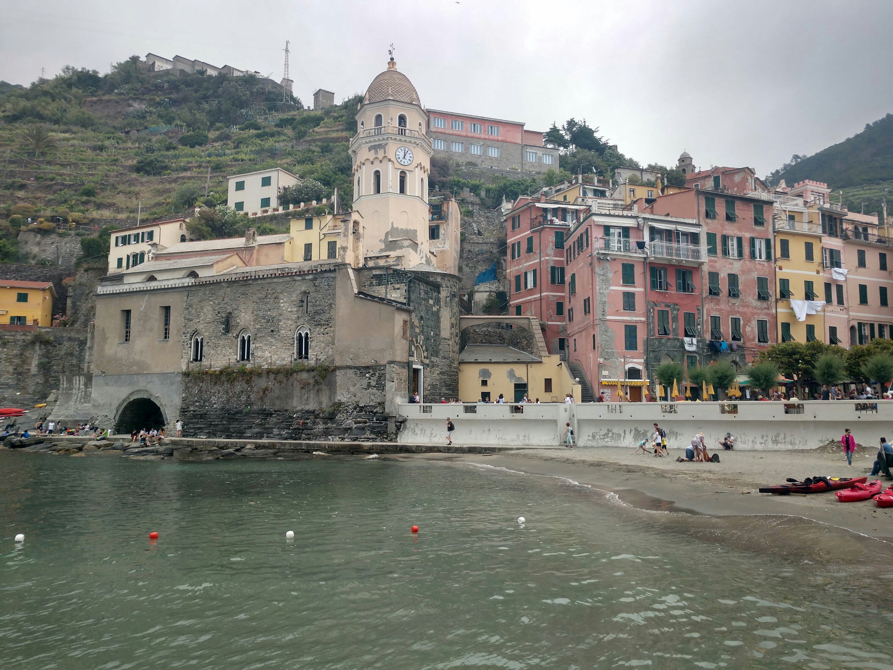 And big days of hiking they were! Although quite a few people hike between the 5 towns that are the namesake of the “cinque-terre”, not many people hike beyond them like I did so I had the entire section of mountains and hillside villages for the first 8 miles and the last 5 miles of my ~23 mile trek practically to myself. The 5 towns of the Cinque Terre were fairly populated with tourists, but Corniglia, the town I spent my second night in, is perched up above water and therefore is inaccessible by ferry, making it much quieter in general and definitely in the evenings. From there I hiked through the park to Levanto, a more substantial town and vacation destination for local Italians, which was a nice change from the tourist ridden (albeit beautiful) towns of the Cinque Terre. The next day I saw the landscape from the vantage point of a ferry back to Porto Venere, said my goodbyes to the coast and headed inland to Pisa!